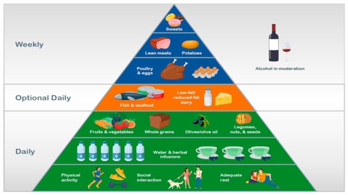 The Mediterranean diet is widely regarded as one of the most effective dietary patterns for promoting health. It emphasizes:
